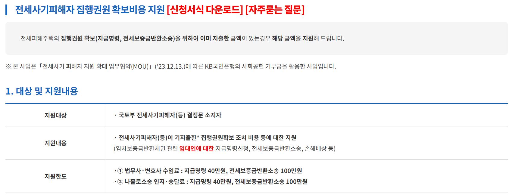 ‘집행권원 확보 비용지원 사업’을 운영하고 있습니다.