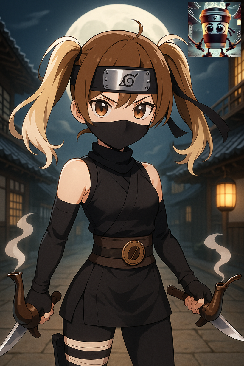 닌자 커피 컵 → 일본 애니풍 미소녀 닌자 바리스타"