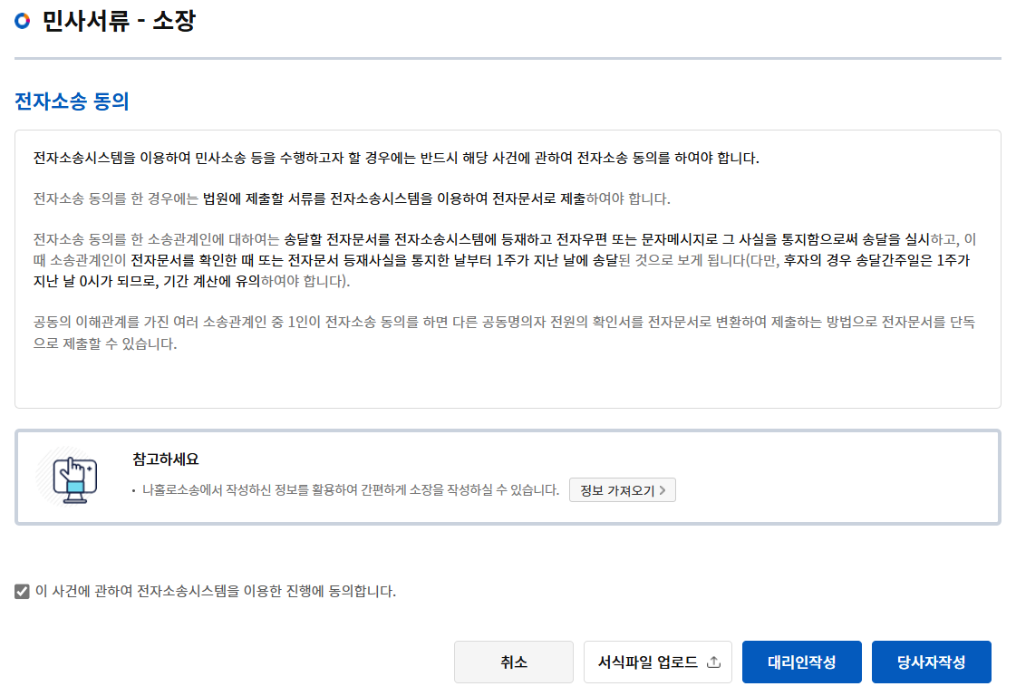소장 전자소송에서 직접 입력 또는 파일 첨부